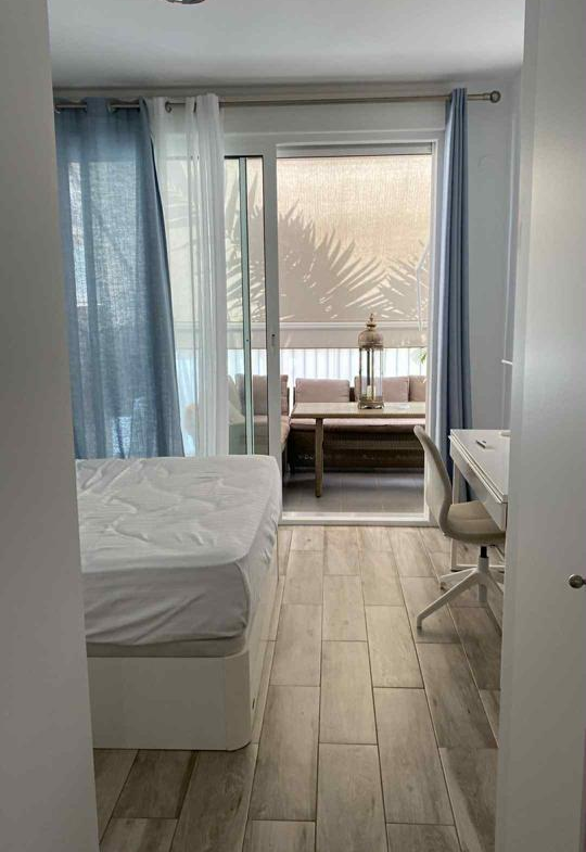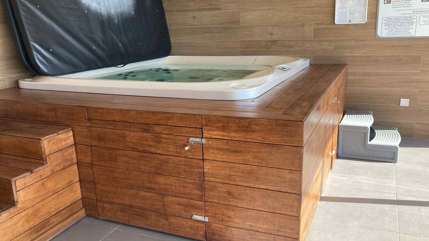 Este moderno apartamento cuenta con 2 dormitorios, 2 baños, amplio salón-comedor, gran terraza privada con jacuzzi, y acceso a piscina comunitaria y gimnasio.